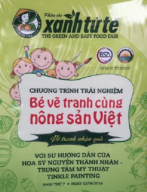 Các bé đến 135A Pasteur, Q3 xem những sản phẩm xanh, sạch và an toàn. Bé vẽ trực tiếp loại trái cây, rau củ quả bé thích