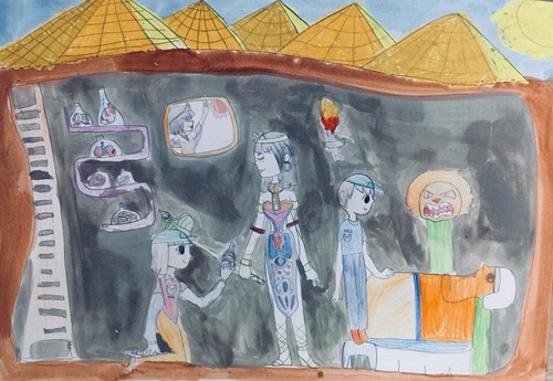 Các bé vẽ các họa tiết hoa văn, làm nên bộ sưu tập thời trang của “các vị thần, binh tướng và nữ hoàng Ai Cập” và hiểu thêm về nền văn minh Ai Cập huyền bí