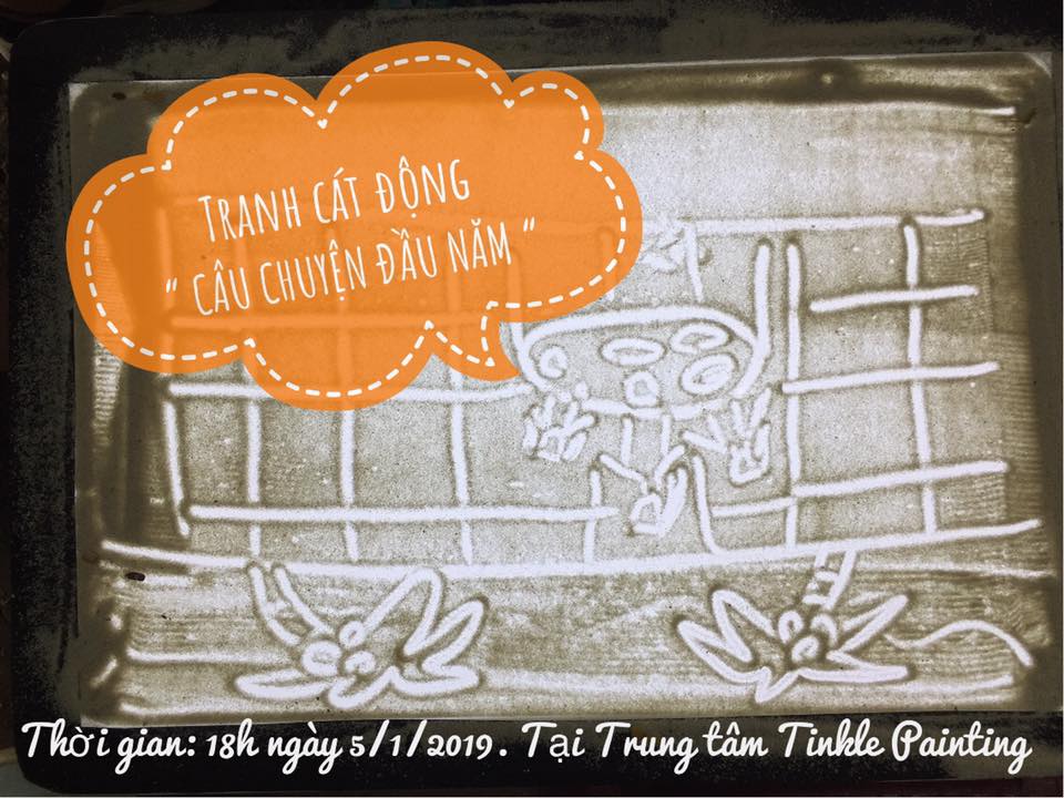 Có hơn 30 bé tham gia với các bài vẽ được thể hiện bằng tranh cát động. Bé trình bày lại câu chuyện của mình như làm gì để phụ ba mẹ ngày Tết, đi chơi và mua sắm ở đâu.