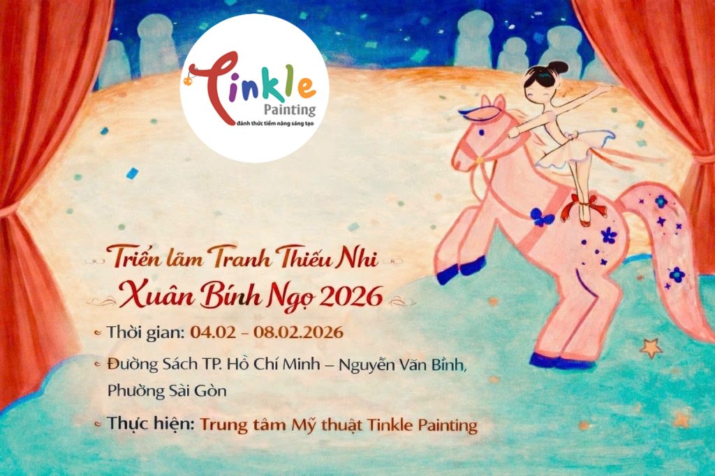 TP. Hồ Chí Minh, tháng 01 năm 2026 – Trong không khí rộn ràng của những ngày giáp Tết cổ truyền, Trung tâm Mỹ thuật Tinkle Painting phối hợp cùng Ban Quản lý Đường Sách TP.HCM trân trọng giới thiệu triển lãm tranh thiếu nhi đặc biệt với chủ đề “Xuân Bính Ngọ 2026”.